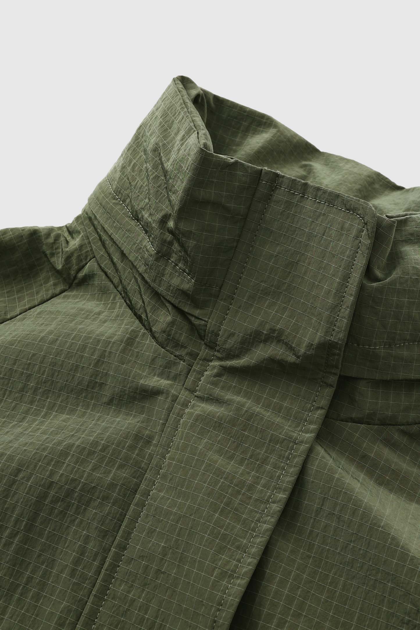 - This women's windbreaker features a loose and accommodating straight silhouette, offering a high level of inclusivity. The angled accordion waist accentuates body proportions, creating an elongated figure. The elastic drawstrings at the cuffs and hem allow for customization.