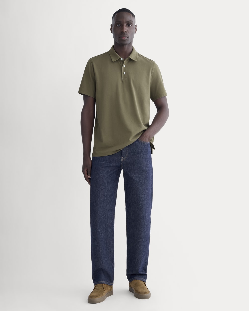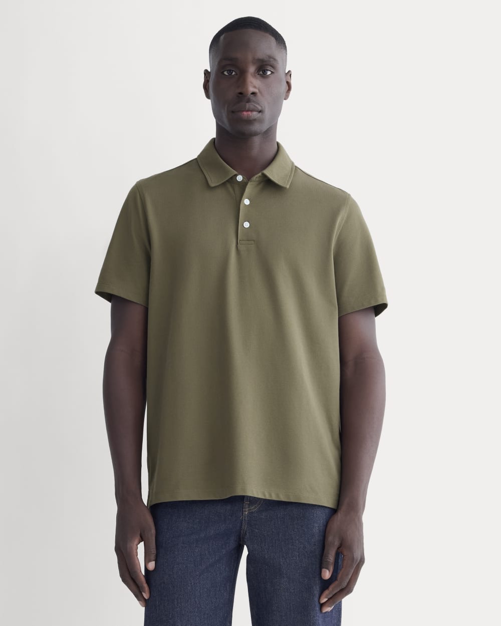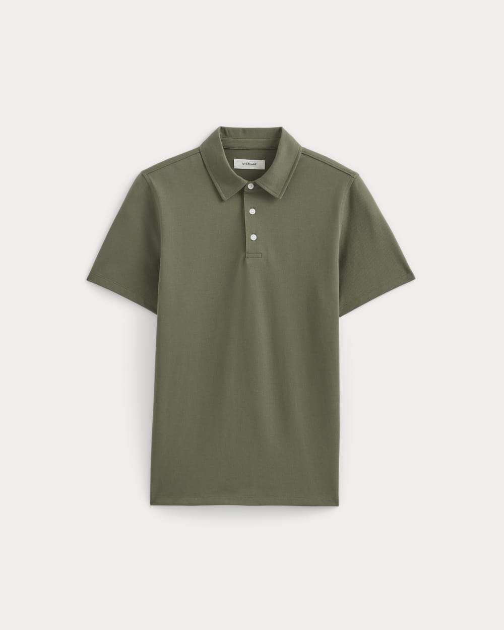 This piece features a polo collar, button placket, slim fit, short sleeves, in a new regenerative cotton and recycled polyester performance fabric that’s moisture-wicking, quick drying, and breathable, with a little stretch.