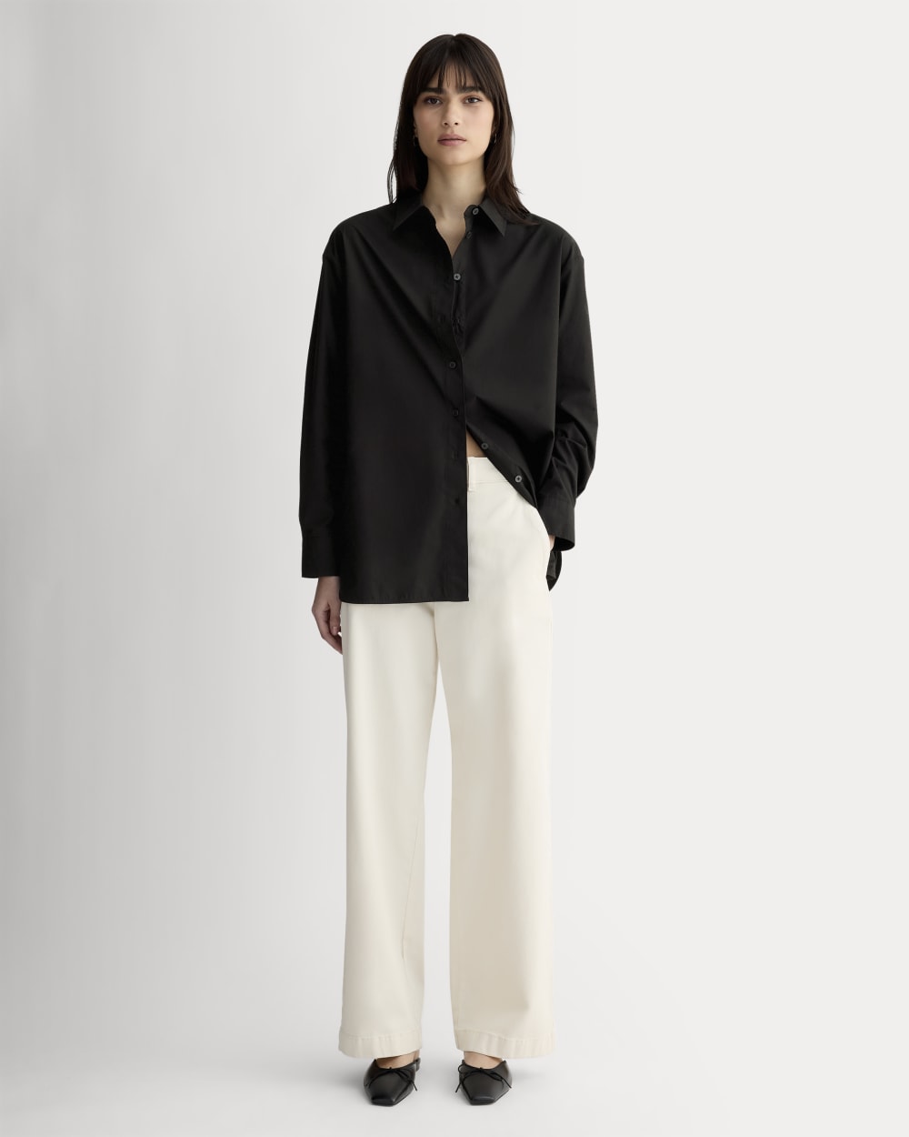 Don’t let your last situationship put you off, this shirt is your perfect match. Borrowed from our original Boyfriend Shirt, it has the same oversized fit, long sleeves, classic collar, button-front closure, and back yoke, but is served in a lightweight, crisp organic cotton. Looking so good on you, you may just want to date yourself. Just saying.