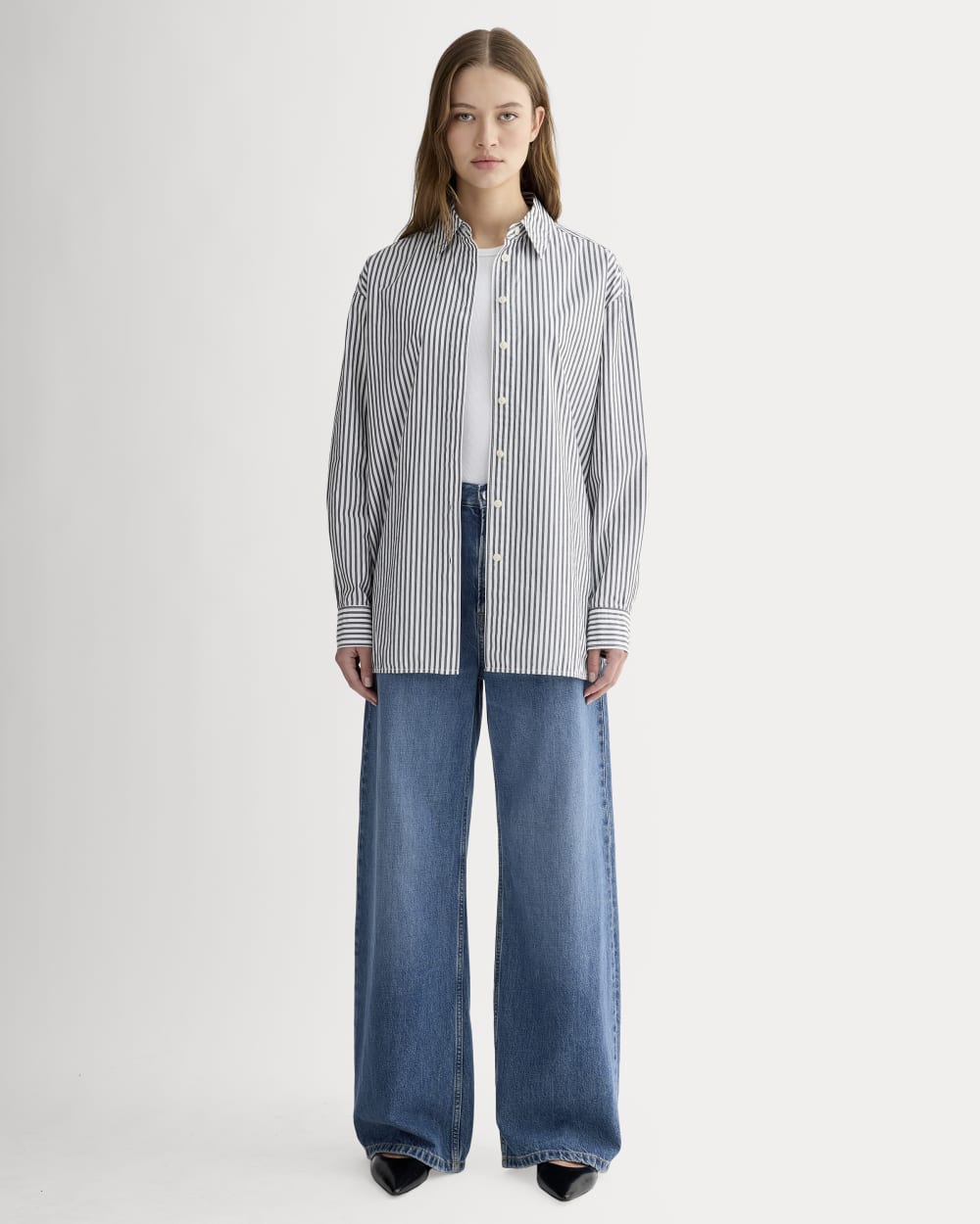 Don’t let your last situationship put you off, this shirt is your perfect match. Borrowed from our original Boyfriend Shirt, it has the same oversized fit, long sleeves, classic collar, button-front closure, and back yoke, but is served in a lightweight, crisp organic cotton. Looking so good on you, you may just want to date yourself. Just saying.