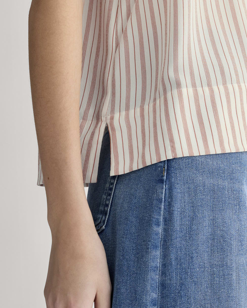 The Notch Shirt in Washable Silk | Bone / Dusky Rose