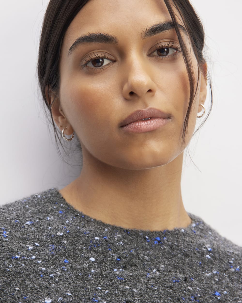 Big on fun, soft to touch, the Confetti Crew celebrates playful style with a sprinkle of colors. Made with a sumptuous merino wool blend in an airy boucle texture, this cozy staple features an oversized silhouette with wide sleeves and ribbed hems. Pair with our Way-High Drape Pant for a relaxed, yet polished, look.