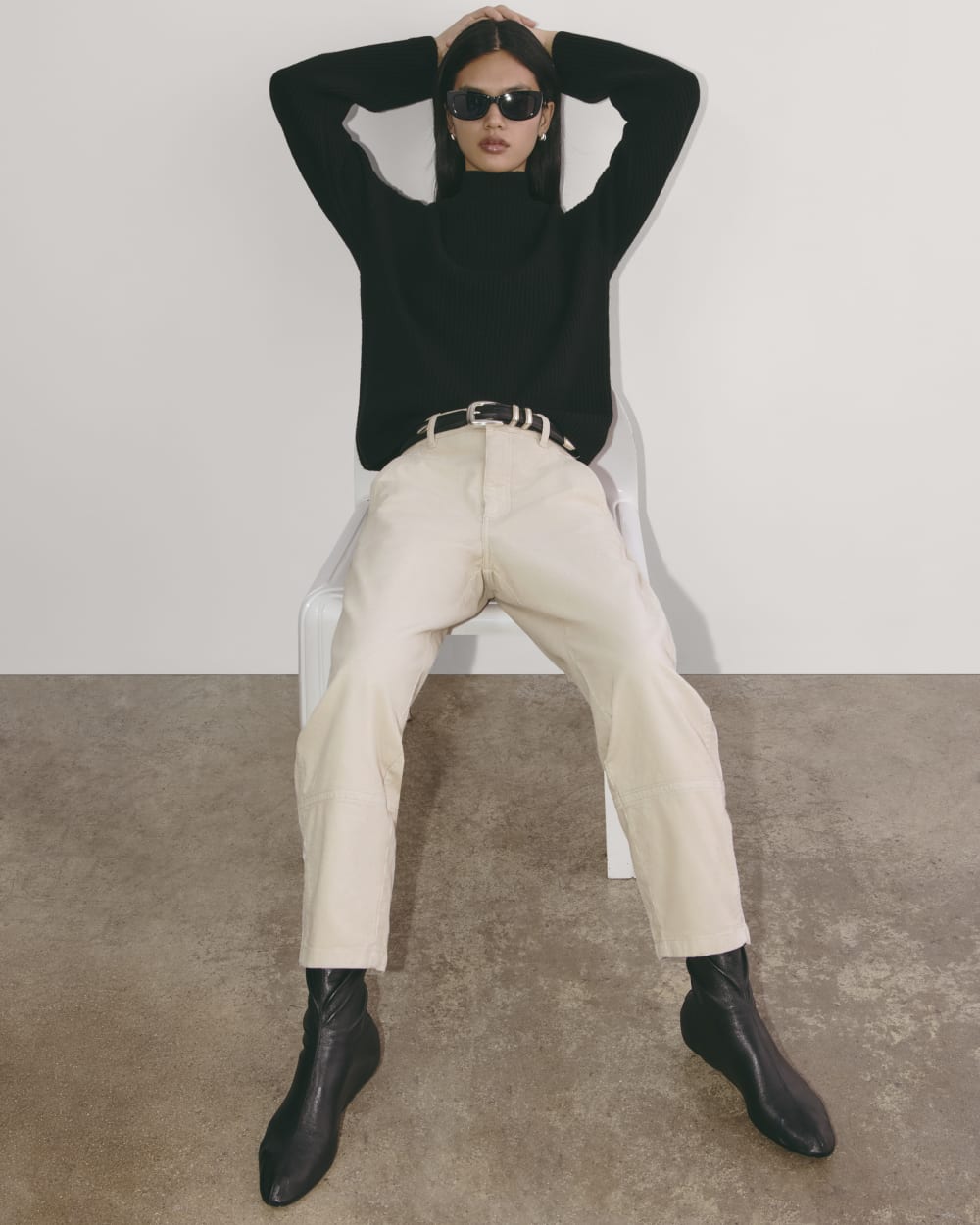 This piece features a high rise, ankle length, barrel fit through leg, front angled pockets, a back patch pocket, and front zipper, made from premium organic cotton.