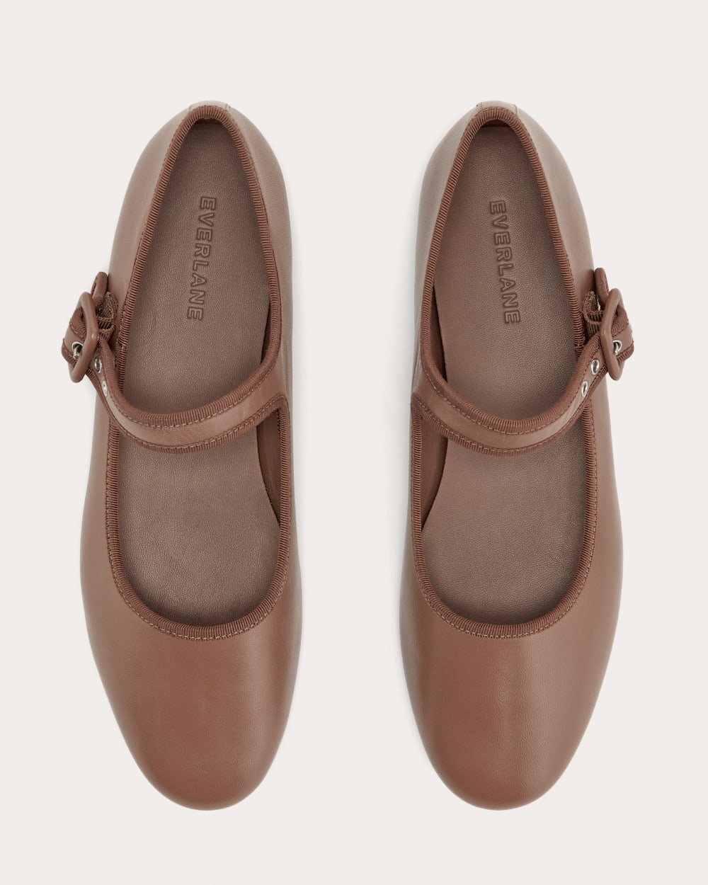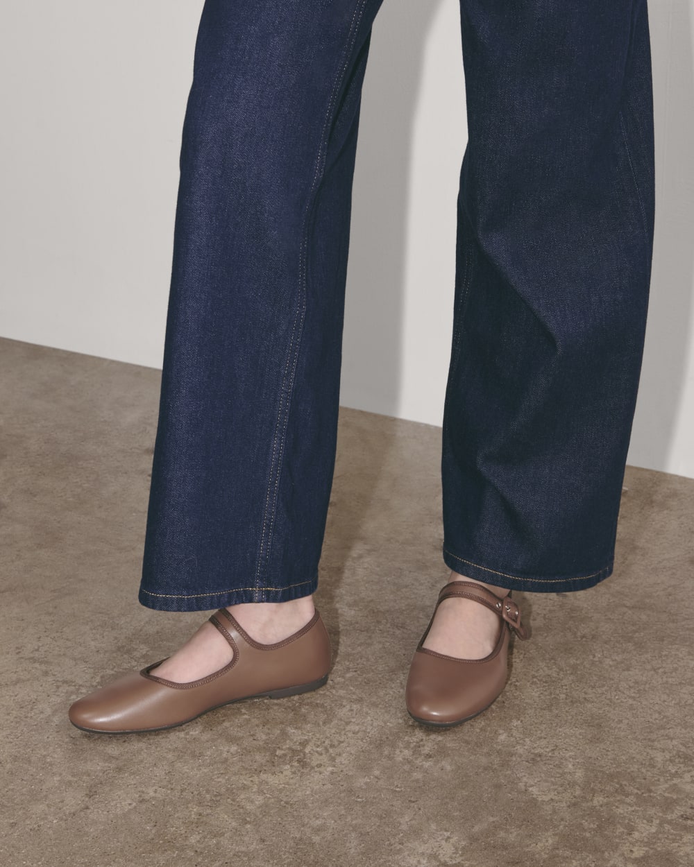 This piece features a round toe, Mary Jane silhouette, adjustable buckle with recycled metal eyelets, rubber outsole, and webbing trim, in Nappa leather.