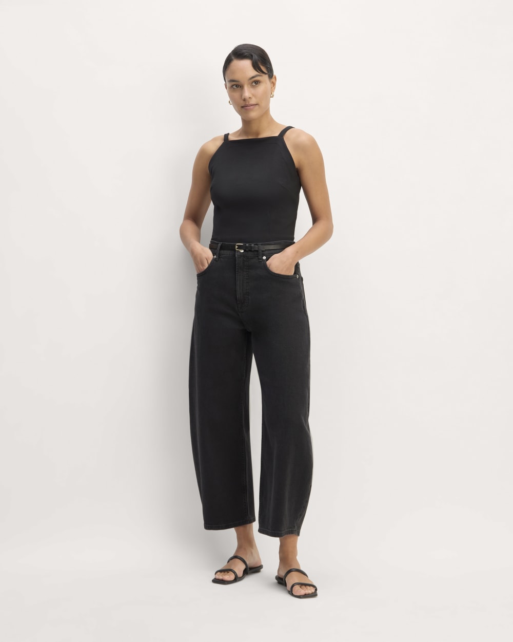 This piece features a high neck, sleeveless, and cropped length, with waist and bust darts, made with our dream organic cotton and TENCEL™ Modal blend.