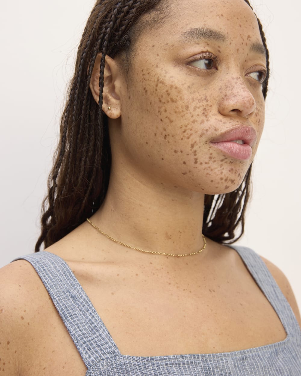 The Linen Side-Button Jumpsuit | White / Blue