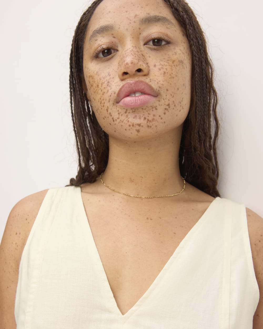 The Linen V-Neck Midi Dress | Bone