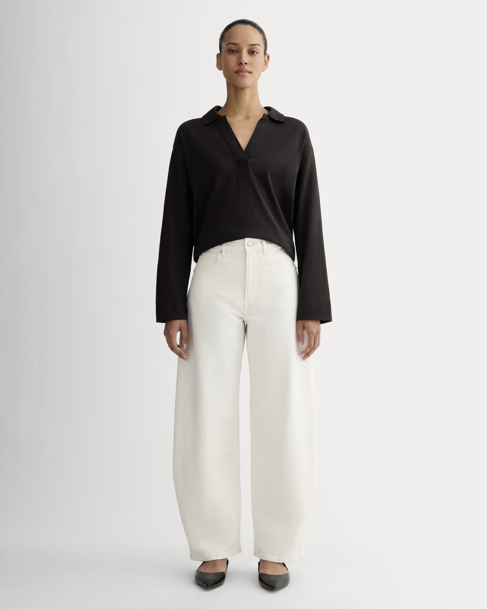 Like that friend you had in college, this rugby shirt is fun, sporty, and always down for anything. Featuring an oversized, boxy fit, open placket, collar, and ribbed cuffs, don't be surprised if you wear it on repeat. Dress up with wide-leg pants or go chill with jeans or joggers. Made with premium weight organic cotton jersey.