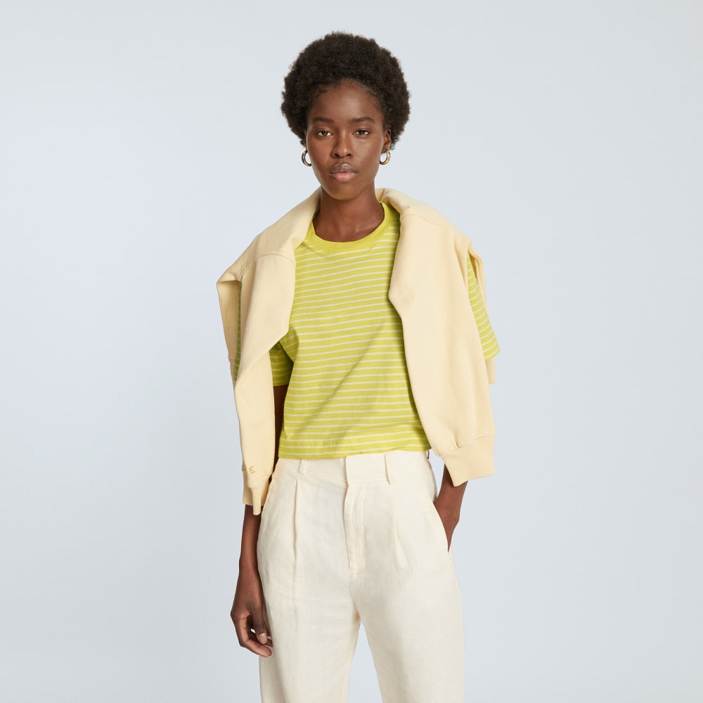 The Organic Cotton Cropped Tee features a classic crew neckline, elongated short sleeves, and a cropped, boxy shape that pairs perfectly with anything high-waisted. Even better? It’s made of 100% organic cotton.