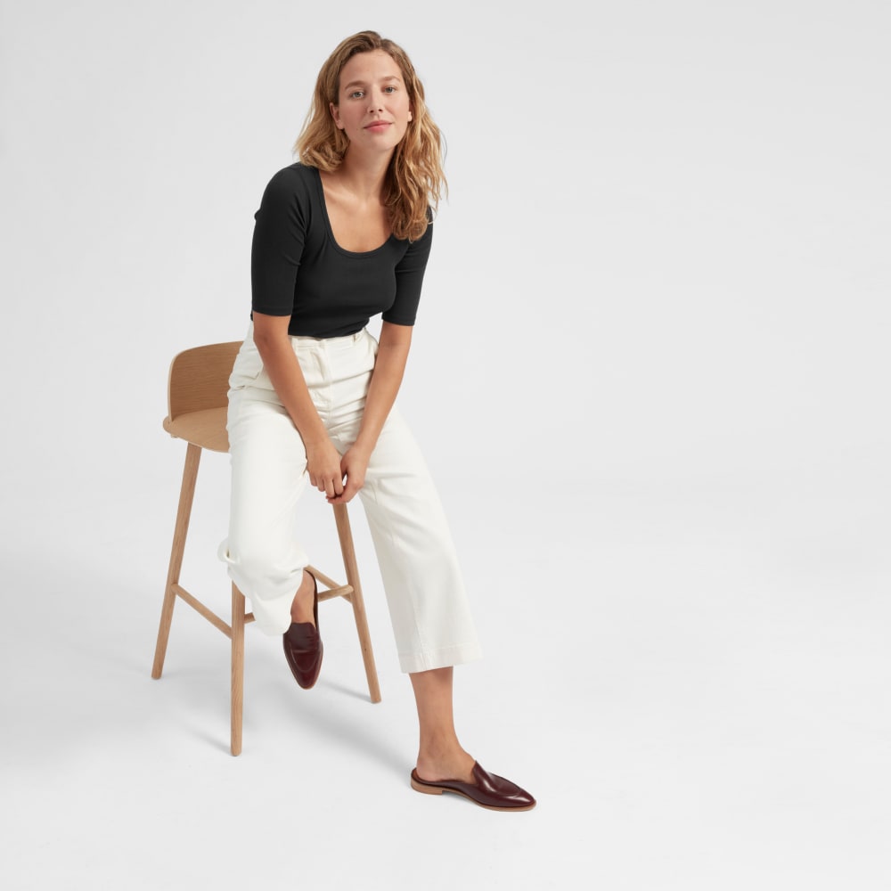 The Luxe Micro-Rib Scoop-Neck Tee | Black