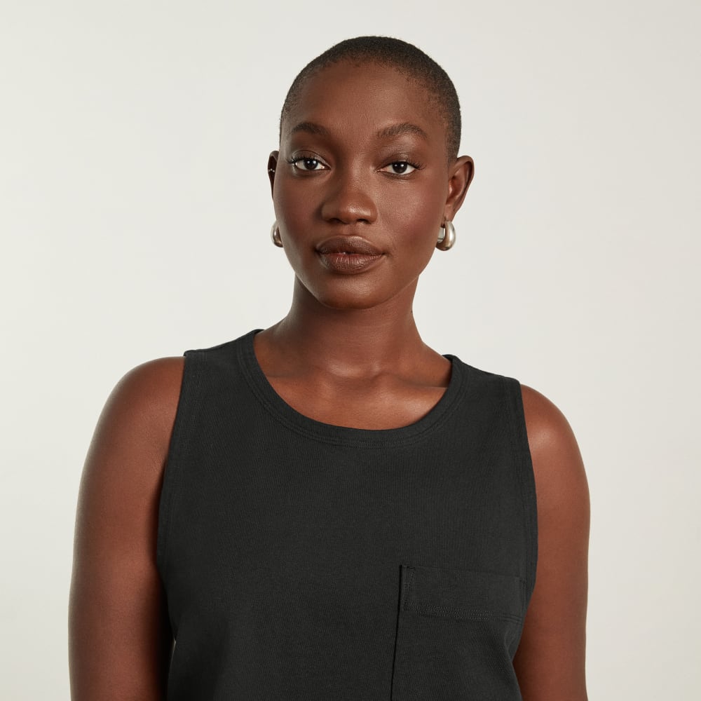 The Premium Weight Cropped Pocket Tank features a cool sleeveless fit with low armholes, a patch pocket, and a triple needle topstitch at the neckline and armholes. Made with 100% organic cotton for all-day breathability. Pair this with some retro jersey shorts for the ultimate summertime look.