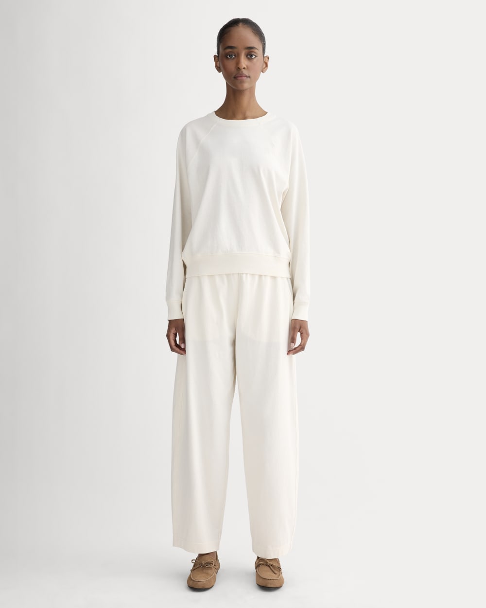 This piece features a relaxed fit, crew neckline, long, raglan sleeves, in premium weight 100% organic cotton jersey.