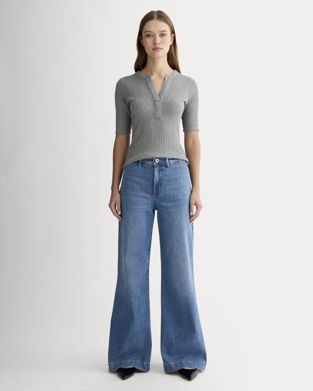 The Rib-Knit Short-Sleeve Henley | Mid Heather Grey