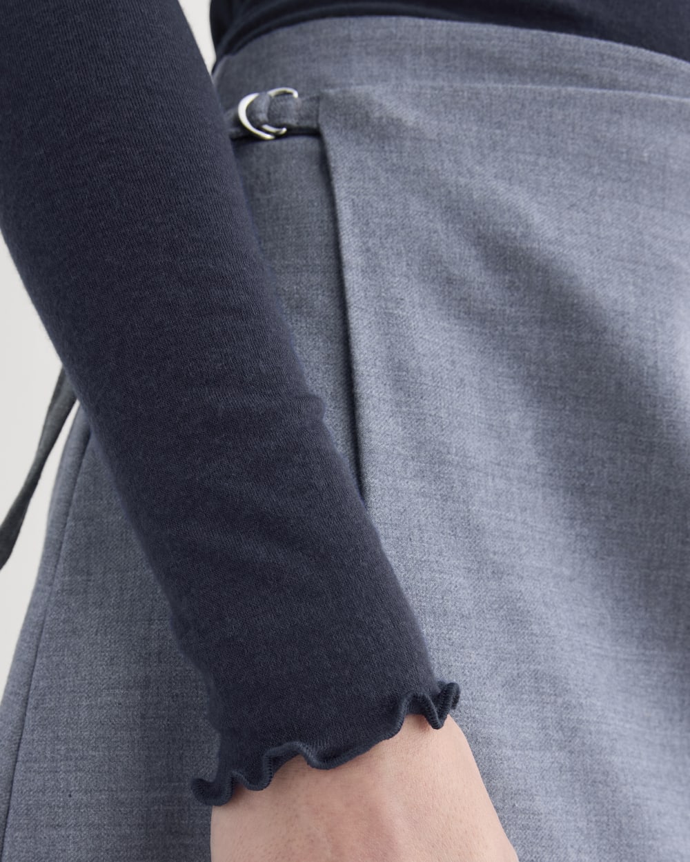 With its slim-fit silhouette and a high V-neck, it features a front button placket with the top two buttons as a neat decorative detail. Adding to its polish, it has a sheer finish and is made with a blend of TENCEL™ Lyocell and wool. Perfectly put-together and ready for a night out, style it with a mini or maxi skirt for a dinner date or pair with tailored pants for in-office days.