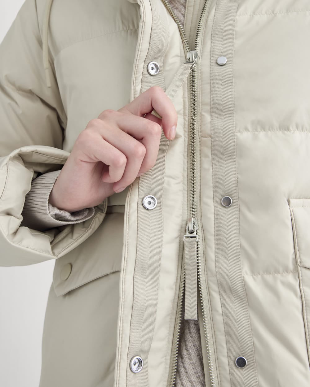 Nearly every element of the EverPuff™—from the insulating fill to the lining and sleek outer shell—is made from certified recycled materials (excluding three small metal trims), reusing resources and reducing the impact of creating new ones. Its recycled shell is both water-repellent and water-resistant, so you stay dry while leaving a lighter footprint. It’s also bluesign® certified and PFAS-free, which guarantees safer performance chemistry for workers and consumers, along with reduced air and water emissions. Filled with 100% Re:Down®, it provides the same lofty warmth as virgin down while giving existing materials a second life and cutting environmental impact. With 700 fill power, it delivers serious warmth while staying light enough to pack and carry with ease. Thoughtful details—like a hidden zipper and covered placket, removable hood, front patch pockets, internal sleeve ribs, and an adjustable hem—make it easy to wear every day. Designed to last season after season with our repair warranty, resold for a second life through Re:Everlane. The cool girls know: super is superfluous. Better-for-you styles could never be that. Not ever.