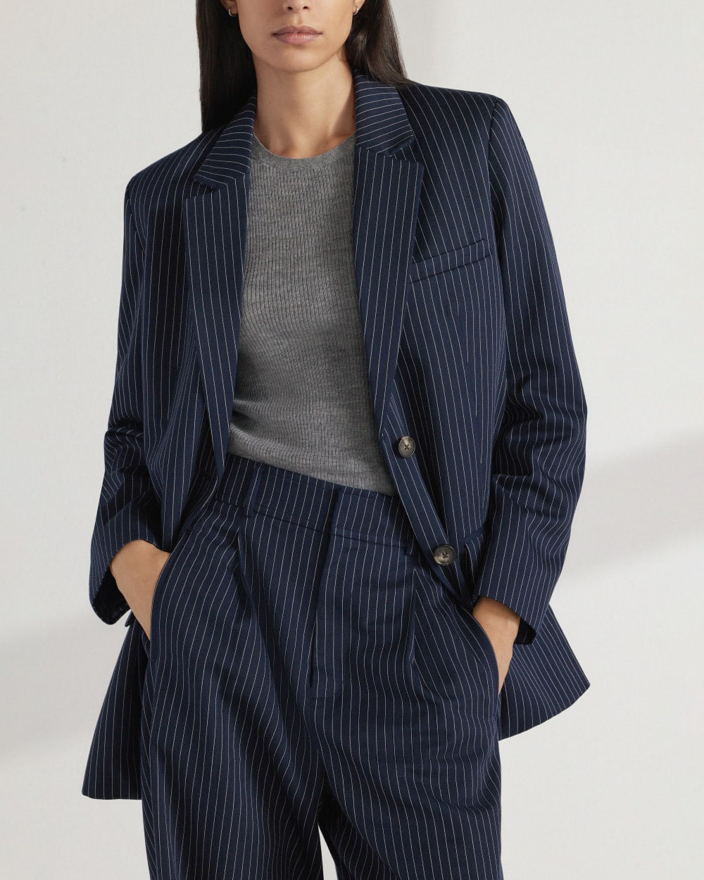 The Long-Sleeve Sweater Tee in Ultrasoft Merino is made from—you guessed it, 100% RWS-certified merino wool. With a form-fitting silhouette, and ultra-soft fabric, it features a ribbed crewneck, a saddle shoulder, and jersey detailing in the underarm. The Responsible Wool Standard (RWS) sets requirements for third-party certification to ensure that wool comes from farms that manage their land with a progressive approach, practice holistic respect for the sheep, and follow the Five Freedoms of animal welfare. The standard also maintains a strong chain of custody for certified materials as they move through the supply chain to guarantee visibility, protect soil health, biodiversity, and native species on all RWS farms, as well as adhere to strict social welfare practices for the health and safety of workers.